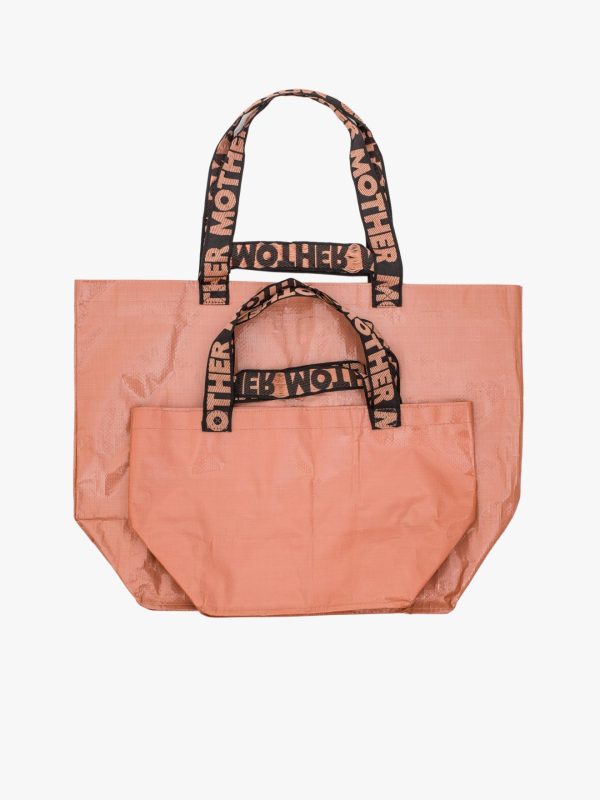Carry on. MOTHER’s take on an iconic shopping bag. Sold as a set of two — with one larger and one mid-size — the rose pink bags feature a boxy, oversized shape, roomy interior and thick branded straps.